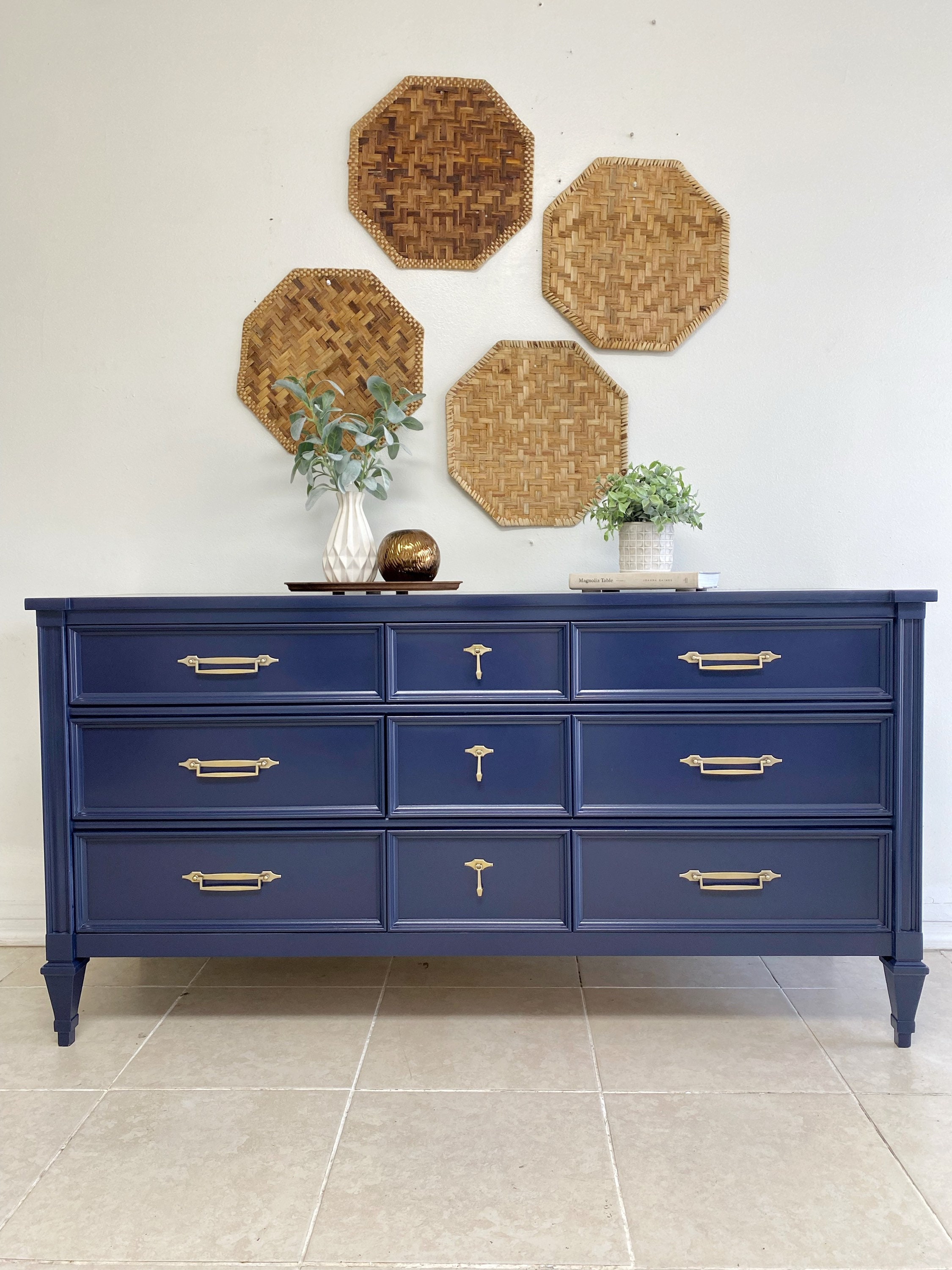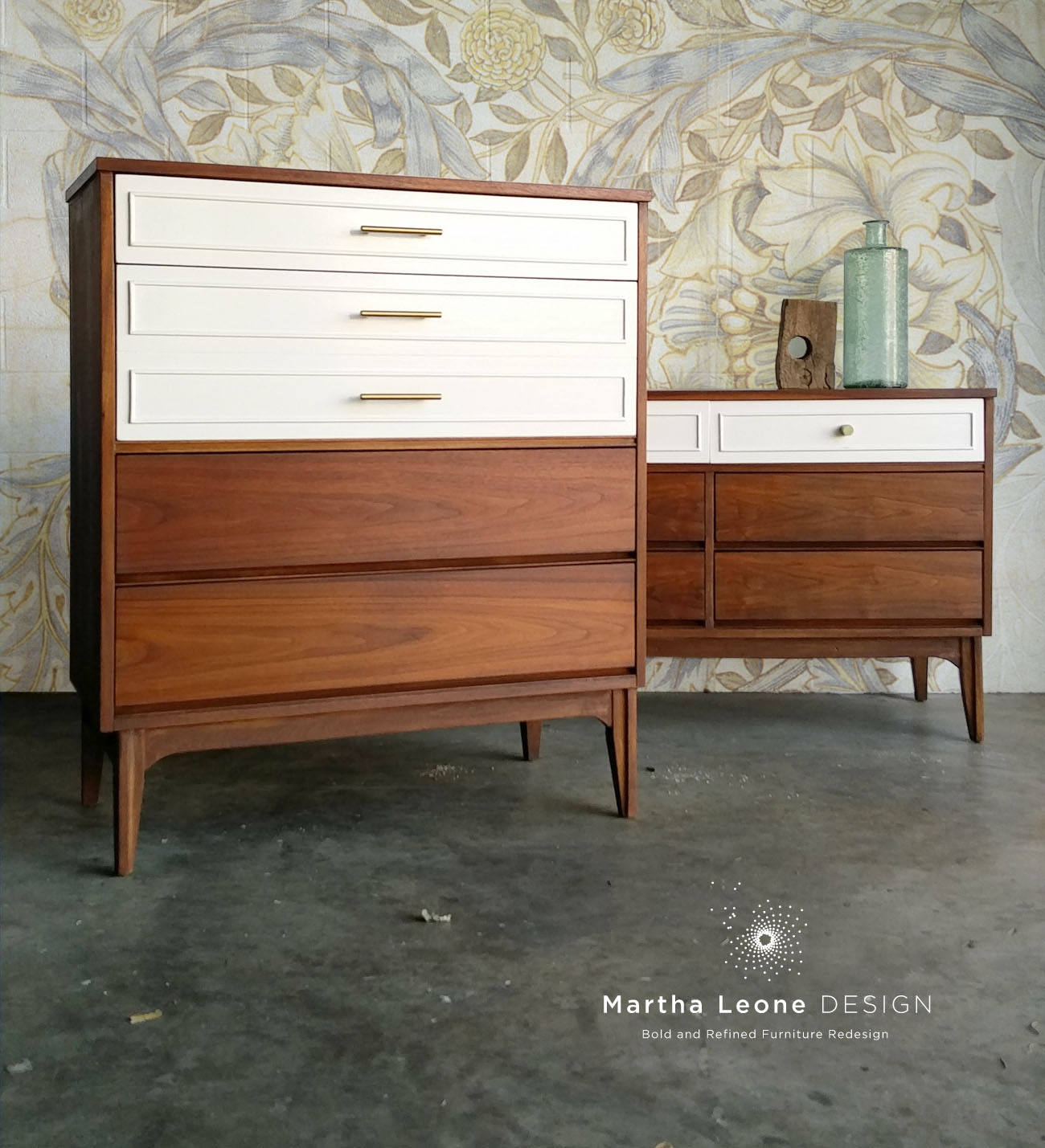 Mid Century Modern 9 Drawers Long. 485 Sep 28 Mid Century Modern Tall Dresser by Bassett Furniture. Mid Century style white dresser with six drawers beveled trim hand cast polished brass hardware with our ghost white lacquered satin finish.