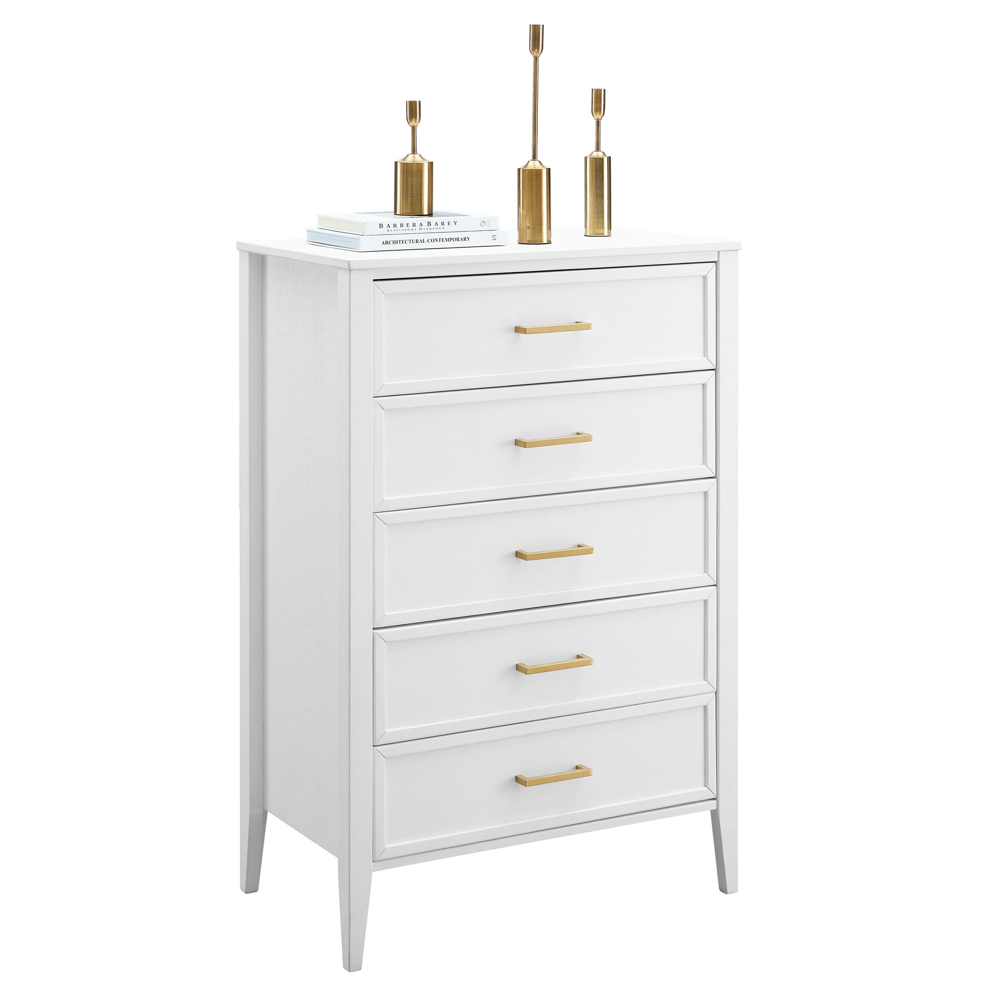 Musehomeinc Solid Wood 5 Drawer Dresser White Chest Of Drawers With Golden Handles Contemporary Mid Century Solid Wood Tall Dressers For Bedroom Organizer Units For Living Room Walmart Com